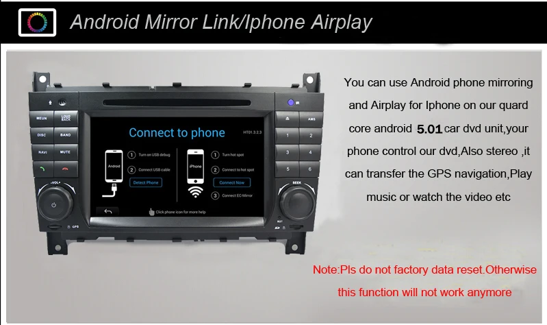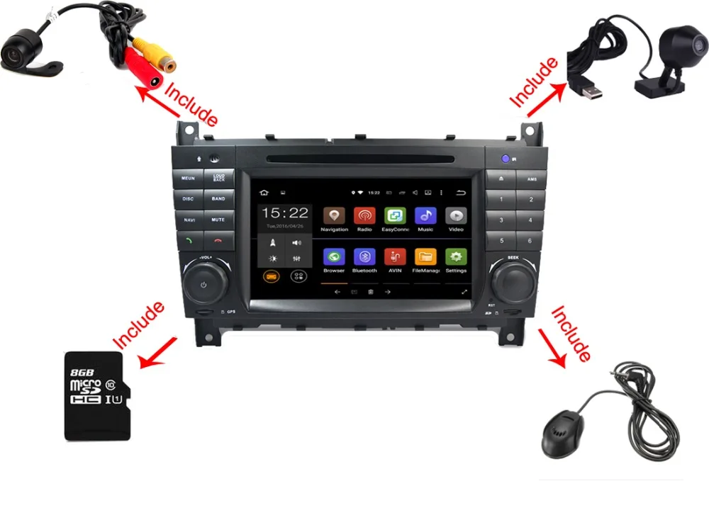 Why Choose DriveMy Way? 1.We only sell Best Quality Car DVD Player at reasonalbe price. As most of our customers bought for personal Use 2. We are an offical professional Car DVD Supplier in China.We focus on producing and selling Car DVD Well 3.We Always have Stock which can send you goods fast if you need urgent. 5.All of our Car DVD with Rear view camera and Latest GPSmap included. You don't have to buy the car rear view camera separetly .Customerscan use it directly after install our dvd inright way 6.We dare not to say our products is 100% No problem.but we do 100% efforts to offer the best quality products and service to our customers. 7"HD 1024x600 Quad core Car DVD Android 7.1 for Mercedes/Benz C Class W203 c200 C230 C240 C320 C350 CLK W209 GPS Radio WiFi 3G Steering wheel control Canbus phonebook Good news : To make our cusotmers car better Use. As long as you order our Android car dvd player.We will send Rear view camera and USB DVR( Car front view camera recorder) free which help you to forms a whole compeleted car dvd system in your car drive.No need to buy the rear view camera and Car DVR from others separtely It can be installed on the followings cars: For Mercedes-Benz C Class W203 C180 C200 C220 C230 C240 C250 C270 C280 C300 C320 C350 C32 AMG C55 AMG C63 AMG 2004-2007 For Mercedes-Benz CLC Class CLC W203 2008-2010 We have the following Functions optional.If you need.Pls contact us before order DVB-T(Digital TV) USD 40 extra DAB( Digital Radio) USD 40 extra Car DVDInstallation tool USD 12 extra 3G Dongle USD 25 extra 2017 LatestPure Android 7.1Version.(Latestandroid version in China) 1.1024X600 HD Capacitive Touch Screen 2.CPU: RK3188 ,Android 7.1 1,CortexA9 QuadCore,1.6GHZ 3.RAM(Memory):2GBDDR3 4.InandFlash:16GB 5.Support1080P+SupportLosslessmusic 6.SupportSteeringWheelControl(Ifyourcarhaveit) 7.BluetoothPhonebookSearchFrom"AtoZ" 8.7"CapacitiveMulti-touchscreen 9.WifiBuilt-in,DonotneedconnectexternalWifiDongle,CangetWLAN 10.8GBMapCardAsGift(IfWedonothavethecountrythatyouneed,wouldsendEmptySDCardasgift) 11.BuiltinMIC 12.OSDLanguage:English/Russian/French/German/Spanish/Italian/Arabic/Portuguese/Turkish/Thai/Poli sh/Hebrewetcover20kindslanguage 13.Rear View Camera Include .no need to buy extra 14.Support Media Card/GPS Card/ USB Stick up to32GB SD card 15.DIY Main Menu Display: You can drag Search Bar, Weather Forecast widgets, Music/Radio/BT-Stereo Player,Apps or other Bookmarks on main menu to display 16. Built-In Clock and Calendar, it has a Real Clock to show time, Clock/Date/Week adjustable 17.Choose76 open unit logosand Radio Area in Factory Settings 18.8 live wallpapers,21wallpapers, supportDIYwallpaper from Gallery Pictures 19.Built-inWiFi dongle, support 802.11b/g/n WLAN Standard, High Performance, Low Power Consumption 20.Support3GInternet, support extral USB Dongle: WCDMA,EVDO,TD-SCDMA. 21SupportGoogle Maps online Navigating, you can use GPS Navigating if you in Internet 22 SupportAndroid Maps Navigation, Free 8GB TF Card with maps will be in parcel contents included 23 SupportDual Zonefunction, while Navigating you can listen music or radio at the same time 24 SupportAndroid Multimedia Player, it can play Music/Movie/Photo from local Disc or connected TF Card. 25Online Entertainment, support online video, TV, movie, music, radio, Youtube, Yahoo, MSN... 26Online Communication, keep connected through WeChat, Twitter, Facebook, Gtalk, Gmail and other services 27. Support read and editOfficial Software, WORD/EXCEL/POWERPOINT/PDF/TXT. 28. SupportGoogle Play Store, you can download thousands of Apps from here and you can down many popular games like Fruit Ninja, Feed the Candy, Angry Birds, Fieldrunner, speed forge 3D... 29. Support3D Games, HD Video, 1080P, H.264, DIVX Live imagesFormats 30. Support HD Videos up to1920*1080pixels, Photo up to 4096*4096 pixels 31.4 x 45w Surround Stereo,SubwooferOutput 32. SupportBluetooth hands-freefunction, built-in microphone 33. SupportA2DP Bluetooth, can play stereo music through Bluetooth from your Phone 34.Download phone bookfunction, you can download contact information from your phone to this unit 35. Support the newestPhone Book Search, you can search&find a contact member in downloaded phone book,just input the first letter of name, you will find some associated names, then you can choose the right one 36.RadioTuner withRDS, 30 Preset Radio Stations (FM: 3*6, AM: 2*6) 37.USBPort and MicroSDSlot, Support USB Stick and Memory Card up to 32GB 38.Built-inCar DVR System, just connect with a USB Camera to use Car Record function. the records will be saved in GPS card automatically, and you can play saved record on this unit directly. 39. Support ExternalMPEG2/MPEG4/ISDB-T Box input T2, Touch Control and Power supply(Optional) 40. SupportRear View Camerainput and reverse trigger Control 41. Support Steering Wheel control function
